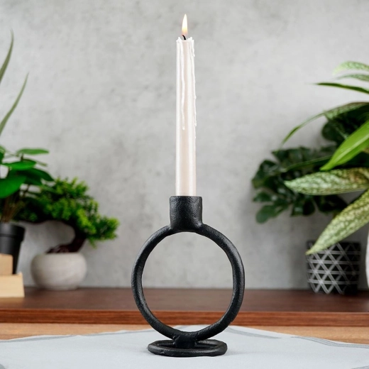 De sculpturale ronde vorm en matte zwarte afwerking maken de kandelaar tot een moderne eyecatcher die het karakter van het interieur benadrukt zonder overbodige versiering.