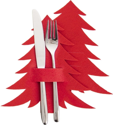Geef je tafelsetting een unieke sfeer. De vilten hoesjes in de vorm van een boom in een diepe rode kleur laten bestek prachtig uitkomen en combineren met de meeste kerstdecoraties en serviezen. Ideaal voor het winterseizoen, feestdiners en familiebijeenkomsten.