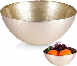 Deze elegante gouden glazen kom is een perfecte keuze voor dagelijks tafelen en feestelijke gelegenheden. Dankzij de diameter van 21 cm en de inhoud van 1,7 l serveert u comfortabel groente- en fruitsalades, maar ook chips of popcorn. Het matte buitenoppervlak met fijne structuur van horizontale strepen geeft de kom een moderne uitstraling en versterkt de presentatie van uw gerechten.