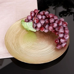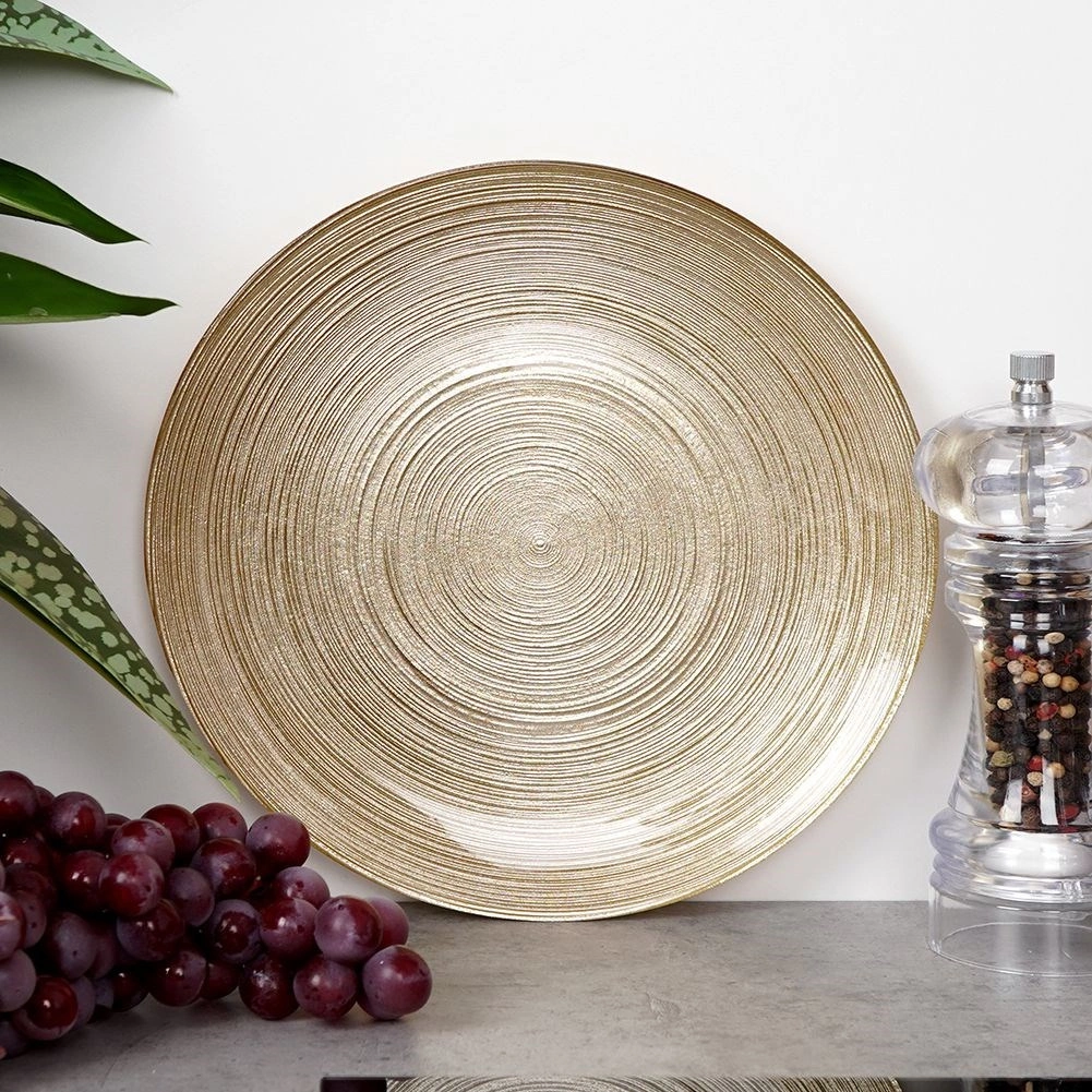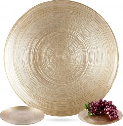 Dit stijlvolle gouden dessertbord geeft elke gedekte tafel extra flair. Hoogwaardig glas met een fluweelmatte bodem en een subtiele structuur van horizontale strepen zorgt voor een opvallende look die prachtig combineert met uiteenlopende serviezen.