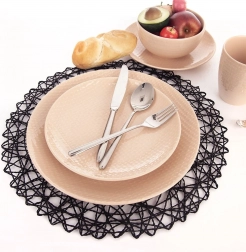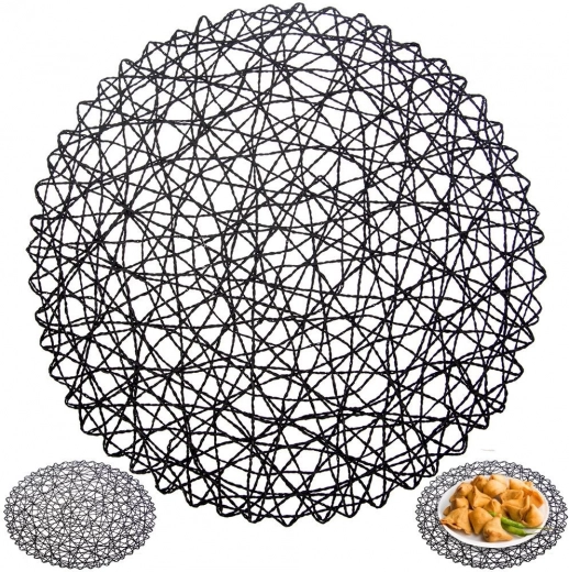 Een elegante tafelversiering in de vorm van een ronde papieren onderlegger in zwart geeft de gedekte tafel een moderne en strakke uitstraling. De structuur die kant benadert is zeer decoratief en komt prachtig tot zijn recht onder borden en glazen of keramische accessoires.