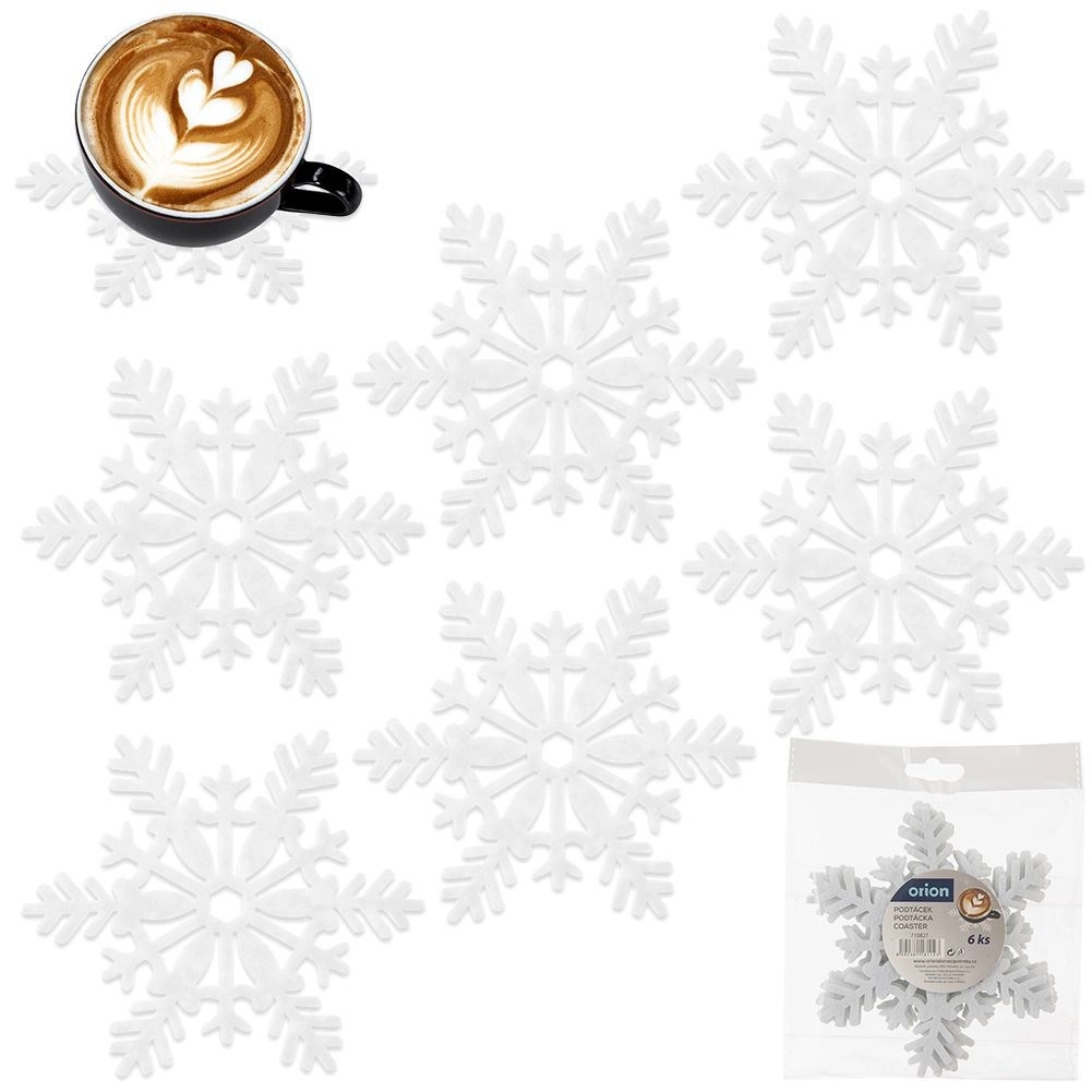 Stijlvolle witte onderzetters van dik vilt beschermen het tafeloppervlak betrouwbaar tegen warmte, vocht en krassen. Het winterse sneeuwvlokmotief creëert direct een feestelijke sfeer en maakt ieder interieur gezelliger. De onderzetters zijn gemakkelijk op te bergen, licht van gewicht en prettig aan te raken.