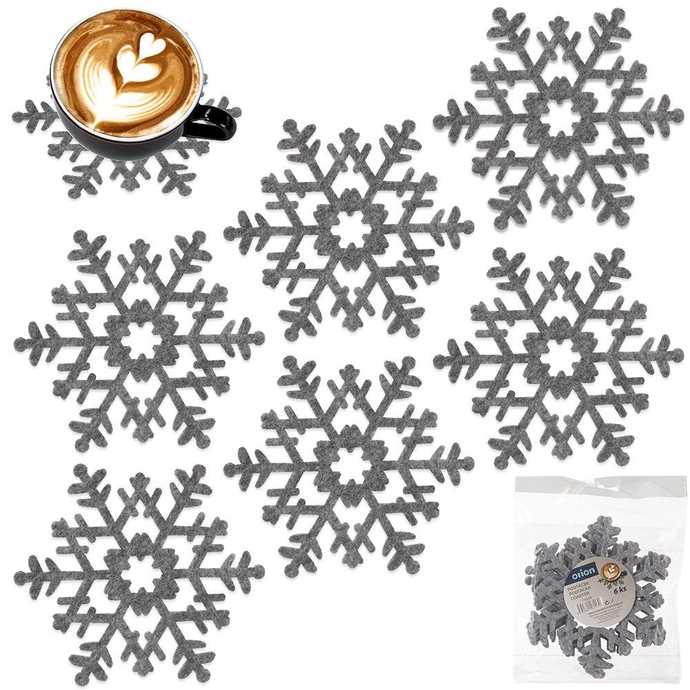 Ontdek praktische en decoratieve vilten onderzetters die krassen en vervuiling van tafels en dressoirs voorkomen. Dankzij de sneeuwvlokvorm creëren ze onder kopjes, glazen of kaarsen een sfeervolle winterse ambiance. Hoogwaardig grijs vilt voelt prettig aan, is zacht voor oppervlakken en gaat bij juist gebruik jarenlang mee.