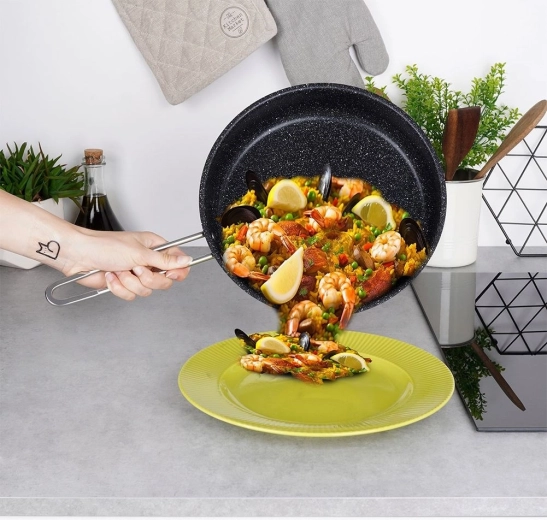 - Granieten antiaanbakoppervlak – krasbestendig, eenvoudig loslaten van gerechten.