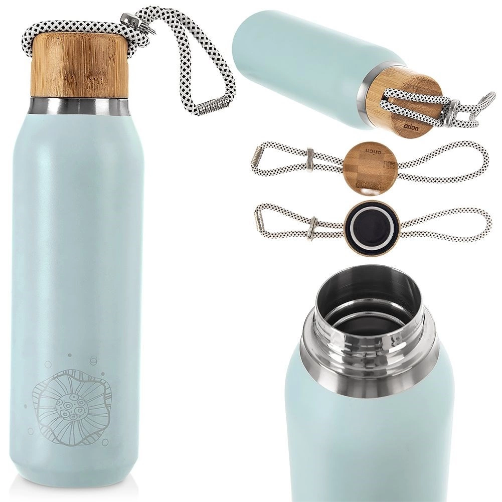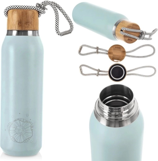 De brede hals vergemakkelijkt vullen en reinigen en maakt het toevoegen van ijsblokjes of stukjes fruit mogelijk. De praktische bamboe dop met koord voor eenvoudig dragen is voorzien van een siliconen afdichting voor betrouwbare lekdichtheid. Ideaal voor trips, werk, school en sport.