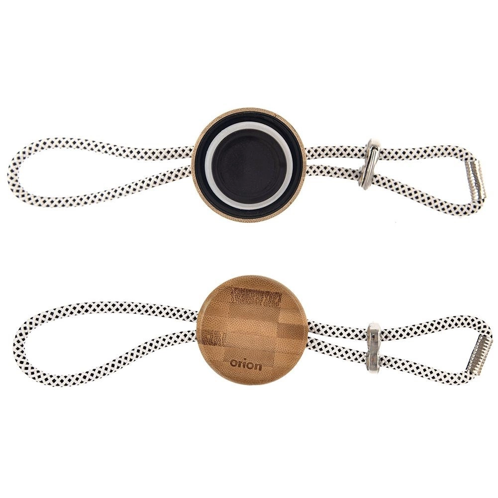 De natuurlijke bamboe dop met schroefdraad en siliconen ring garandeert lekdichtheid. Het geïntegreerde koord maakt dragen en ophangen gemakkelijk.