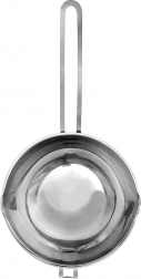 Deze roestvrijstalen kom voor au bain-marie is ontworpen voor precies en mild verwarmen zonder risico op aanbranden. Perfect voor thuisbakkers en liefhebbers van handgemaakte kaarsen – ideaal voor het smelten van chocolade, boter en was. De praktische lange handgreep garandeert een veilige grip en de haak laat de kom stevig op de rand van de pan rusten.