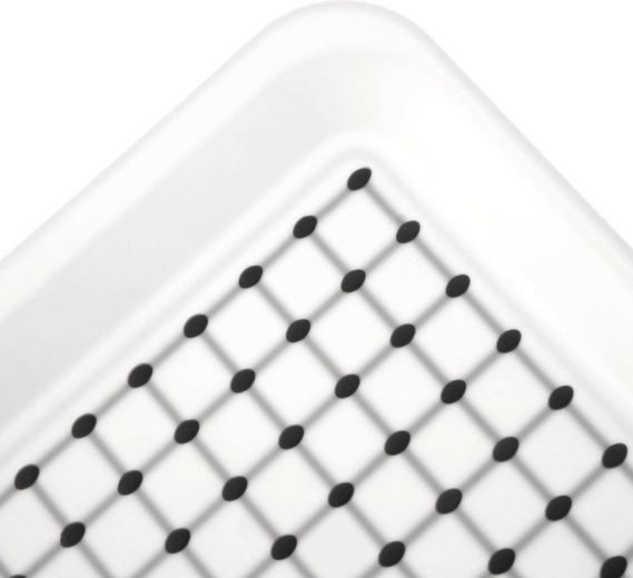 Het bovenoppervlak met fijne puntjes en de antislip-elementen aan de onderkant houden alles stevig op zijn plaats – ideaal voor glazen, mokken en borden.