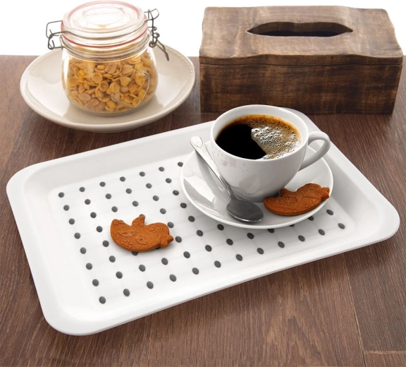 Het blad is perfect voor dagelijks gebruik en voor het bedienen van gasten tijdens feestjes. Het is licht en makkelijk afwasbaar en door de kwalitatieve afwerking geschikt voor langdurig gebruik. Het universele formaat 33 × 23 cm is ideaal voor het dragen van drankjes, desserts of ontbijt op bed.