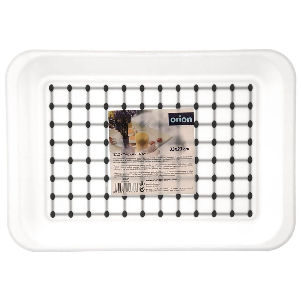Duurzaam keukenblad/serveerblad van hoogwaardige kunststof in het wit met grijze details, ontworpen voor veilig en comfortabel serveren. Dankzij de antislipafwerking aan de boven- en onderzijde blijven kopjes, glazen en borden stabiel en schuift het blad niet over de tafel. De verhoogde randen maken vastpakken gemakkelijk en minimaliseren het risico op morsen.