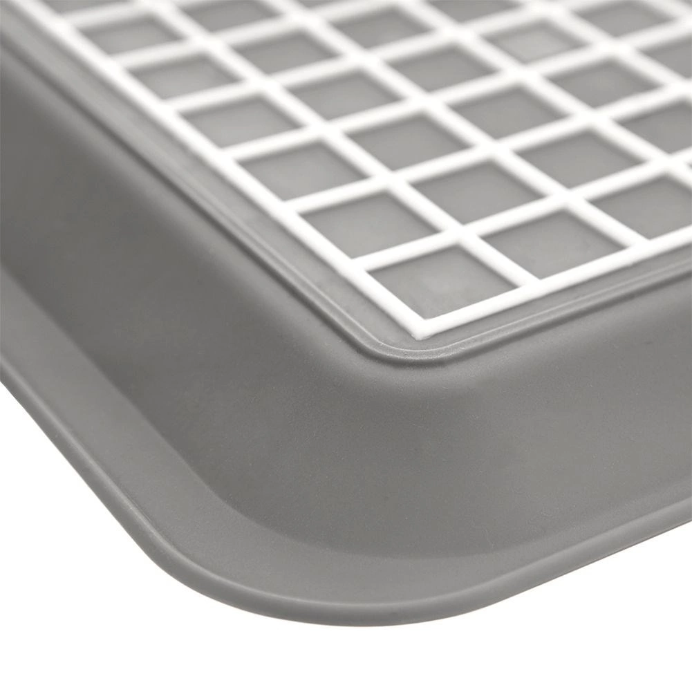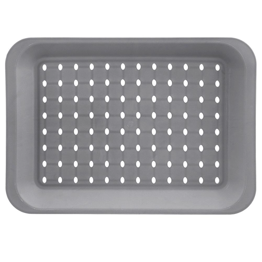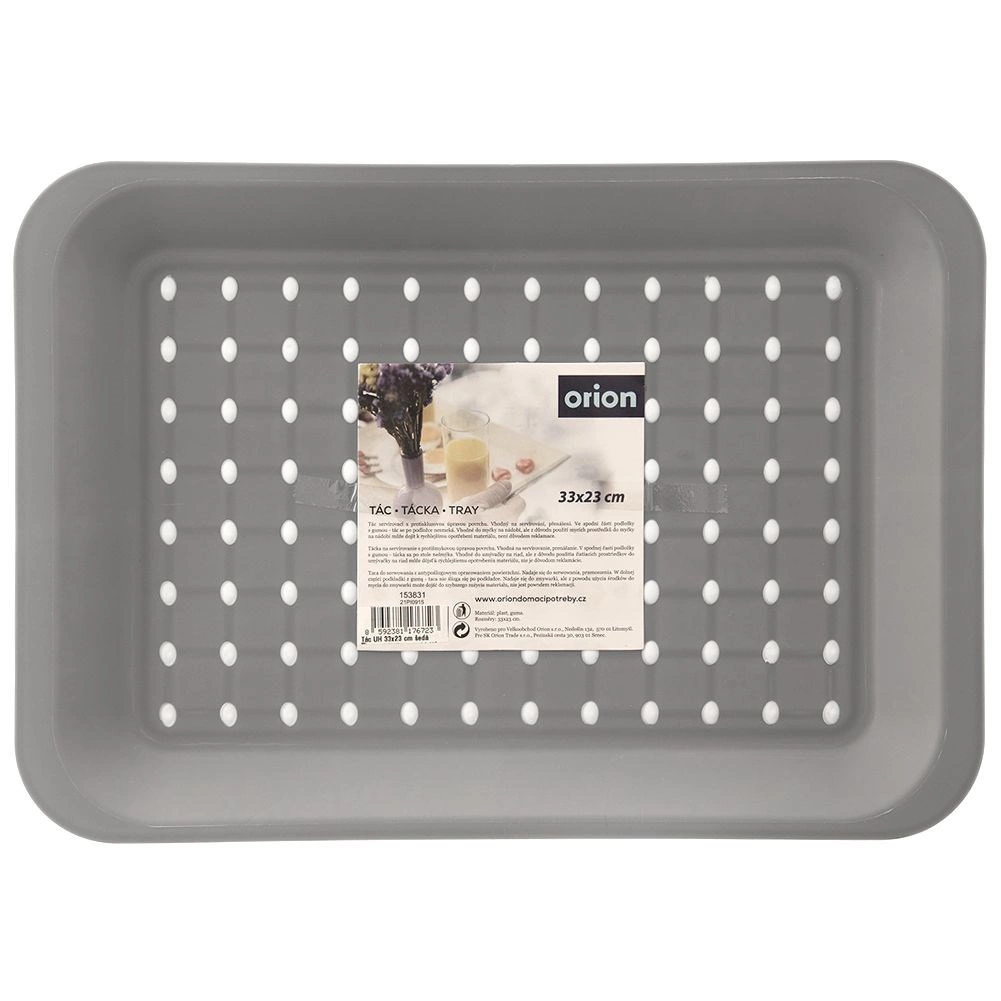 De grijze serveerschaal is een betrouwbare hulp bij het serveren van dranken en gerechten. Duurzaam plastic met witte accenten en een antislipafwerking zorgt voor stabiliteit tijdens het dragen, zowel aan de bovenkant als aan de onderzijde. Dankzij de verhoogde rand ligt het blad prettig in de hand en wordt het risico op morsen geminimaliseerd.