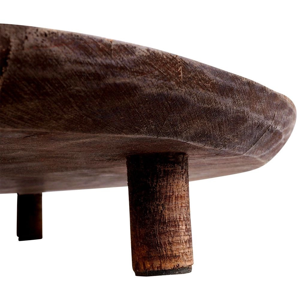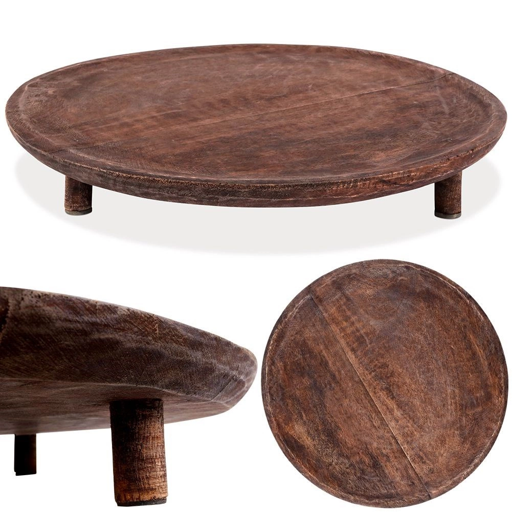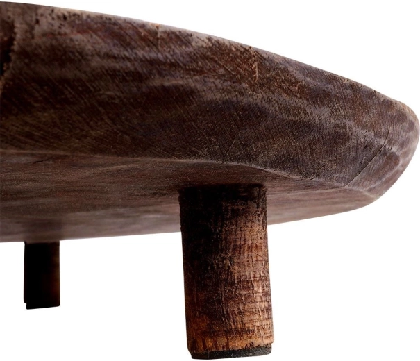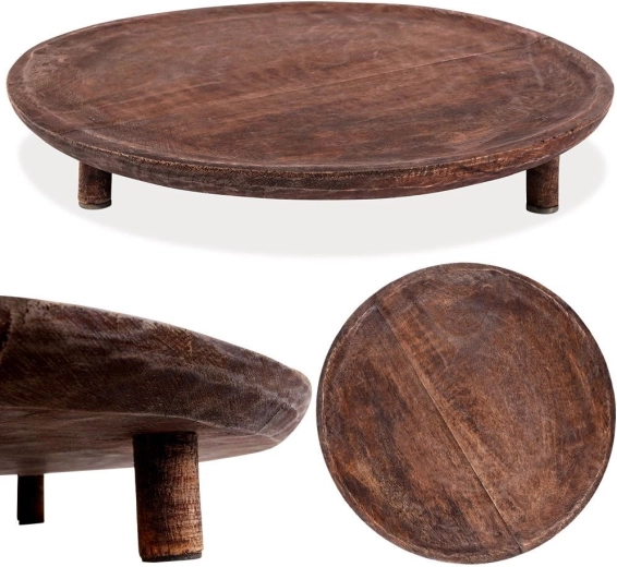 De ronde serveerplank op lage pootjes geeft het tafelen hoogte en stijl en is perfect voor het presenteren van gerechten en decoraties.