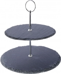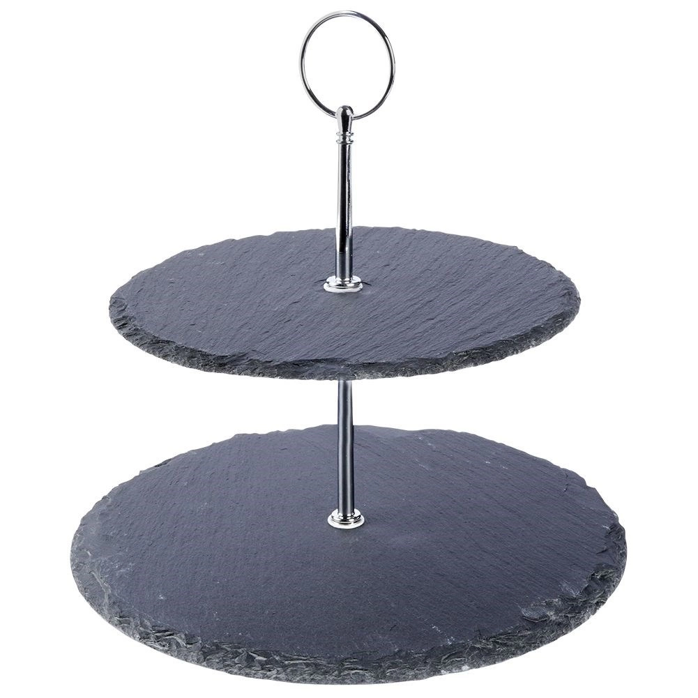 Geef je tafel een verfijnde touch met de tweelaagse etagère van natuurlijke leisteen met een hoogte van 23 cm. De twee ronde platen met verschillende diameters bieden volop ruimte voor cupcakes, koekjes, gebakjes en hartige hapjes. De natuurlijke leisteen valt op door zijn rustieke look en past perfect in zowel moderne als klassiek ingerichte interieurs.