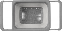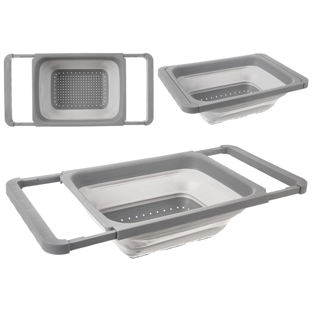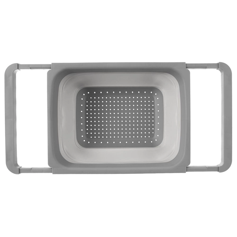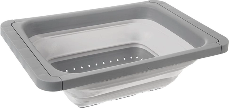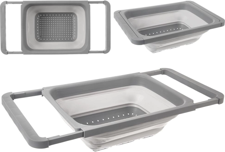 De opvouwbare vergiet voor boven de gootsteen combineert een slim ontwerp met duurzame materialen voor maximaal gemak in de keuken. De uitschuifbare handgrepen pas je eenvoudig aan de breedte van de gootsteen aan, zodat je beide handen vrij hebt voor comfortabel afspoelen en afgieten. Na gebruik druk je hem eenvoudig plat en berg je hem op, zelfs in een lage plank.