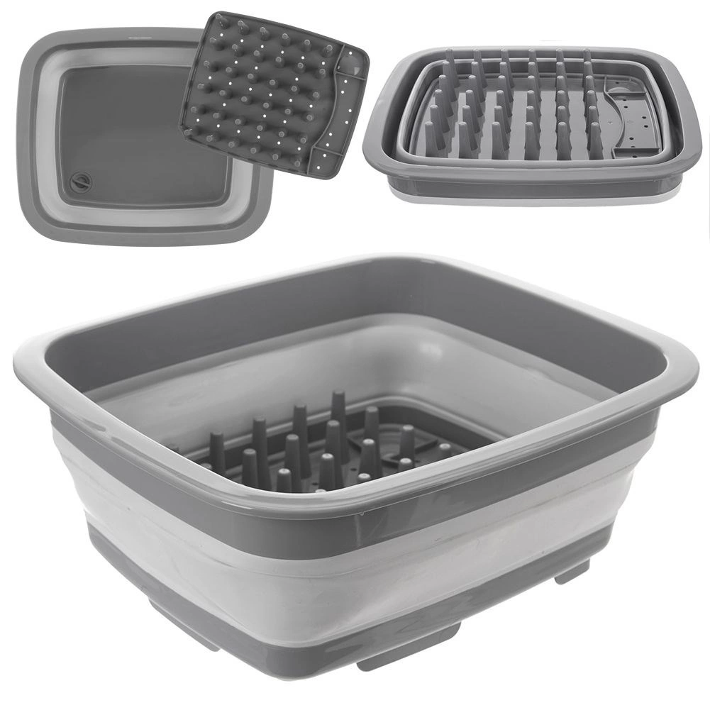 De uitneembare inzet met pinnen houdt borden rechtop en zorgt voor snel drogen. Verwijder je de inzet, dan verandert het afdruiprek meteen in een praktische gootsteen of kom – een geweldige oplossing voor kleine keukens, op de camping, in de tuin of op het zomerhuis. Hoogwaardig thermoplastisch siliconen en duurzaam kunststof zijn gemakkelijk te onderhouden; de inzet is vaatwasmachinebestendig.