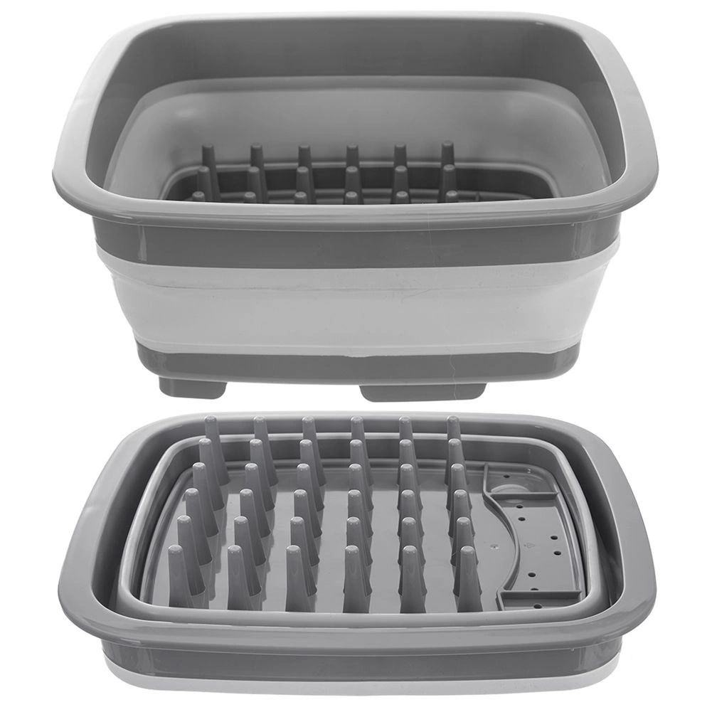 De behuizing van het afdruiprek klap je in een seconde plat, zodat het geen plek inneemt in de kast of caravan.