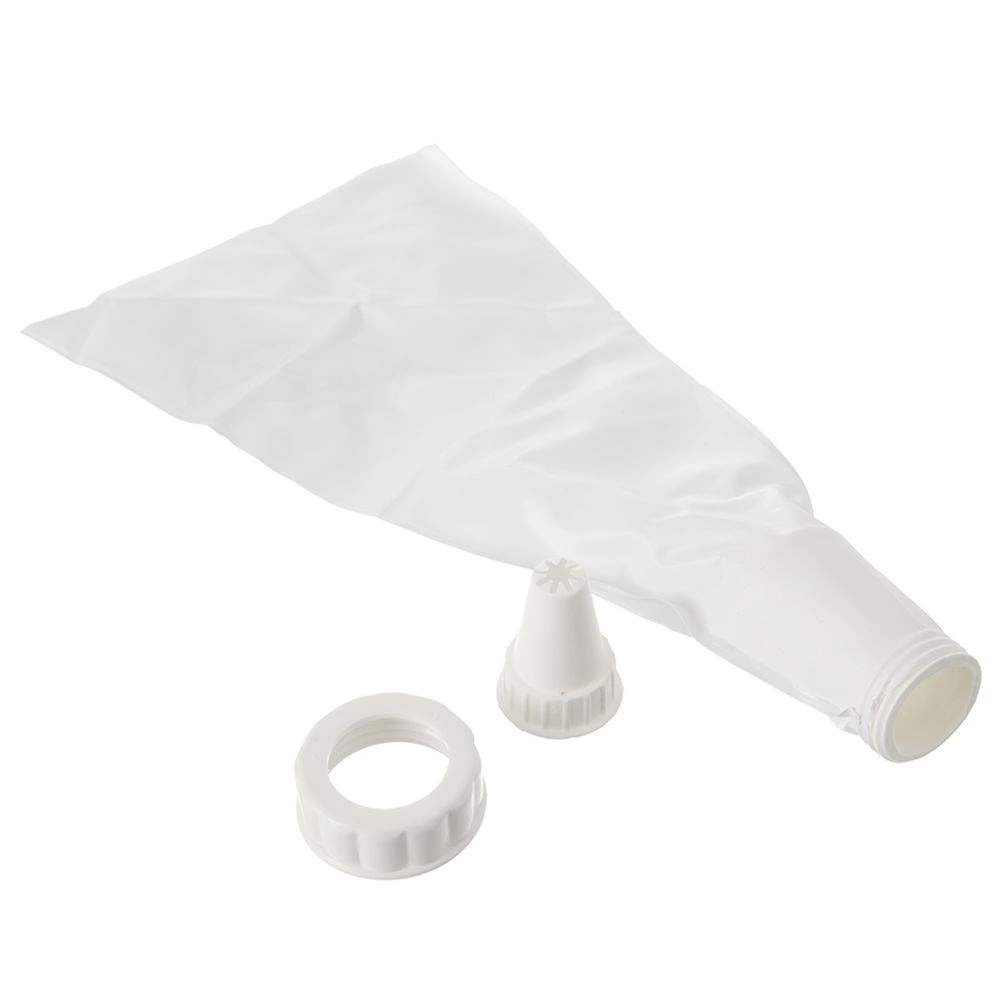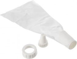 De adapter houdt de spuitmond betrouwbaar vast, zelfs bij dikke crèmes en hogere druk. Spuitmonden zijn te wisselen zonder de vulling uit de zak te halen.