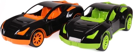 sportieve plastic auto 38 cm met vrijloop, 2 kleuren