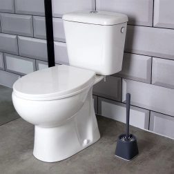Houd het toilet perfect schoon met deze praktische wc-borstel met siliconen haren en compacte houder met lektray. Licht maar stevig van constructie, gemaakt van hoogwaardig kunststof in grijs, voor een lange levensduur en eenvoudig onderhoud. Siliconen haren zijn hygiënisch, drogen snel en nemen geen vuil op.