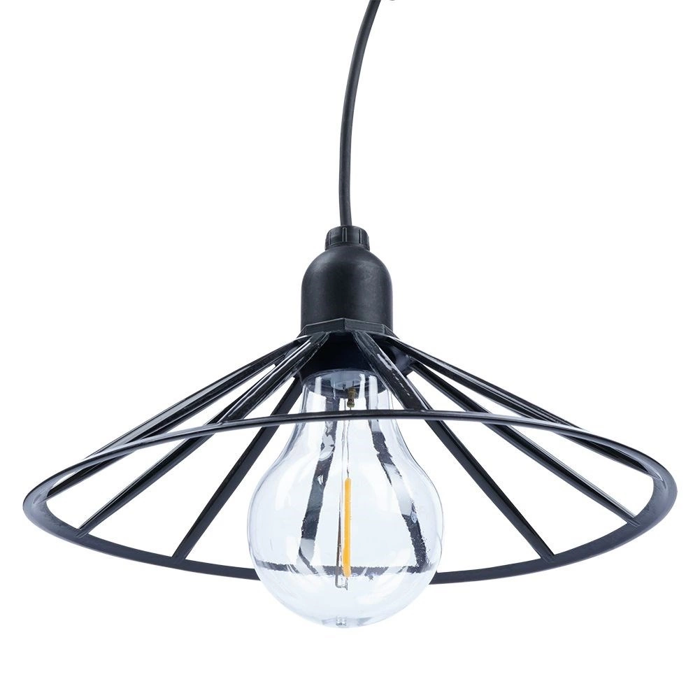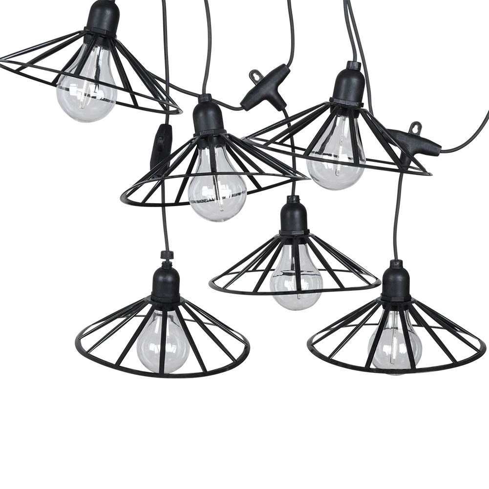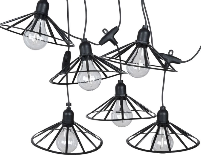 Zes heldere LED-lampen in zwarte metalen kooitjes creëren aangenaam warm licht en een opvallend decoratief effect.