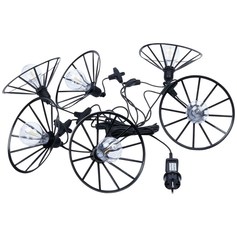 Deze decoratieve lichtslinger geeft je buitenruimte een gezellige toets. Zes heldere LED-lampen met warme lichtkleur in elegante zwarte kooitjes verspreiden het licht gelijkmatig en creëren een prettige sfeer voor dagelijks samenzijn en feestelijke gelegenheden.