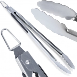 Deze barbecuetang van hoogwaardig roestvrij staal laat je vlees, groenten en andere gerechten op de barbecue én in de keuken comfortabel en veilig omdraaien. De lange handgreep beschermt tegen hitte, terwijl antislip-elementen voor een stabiele grip zorgen, zelfs met vette handen.