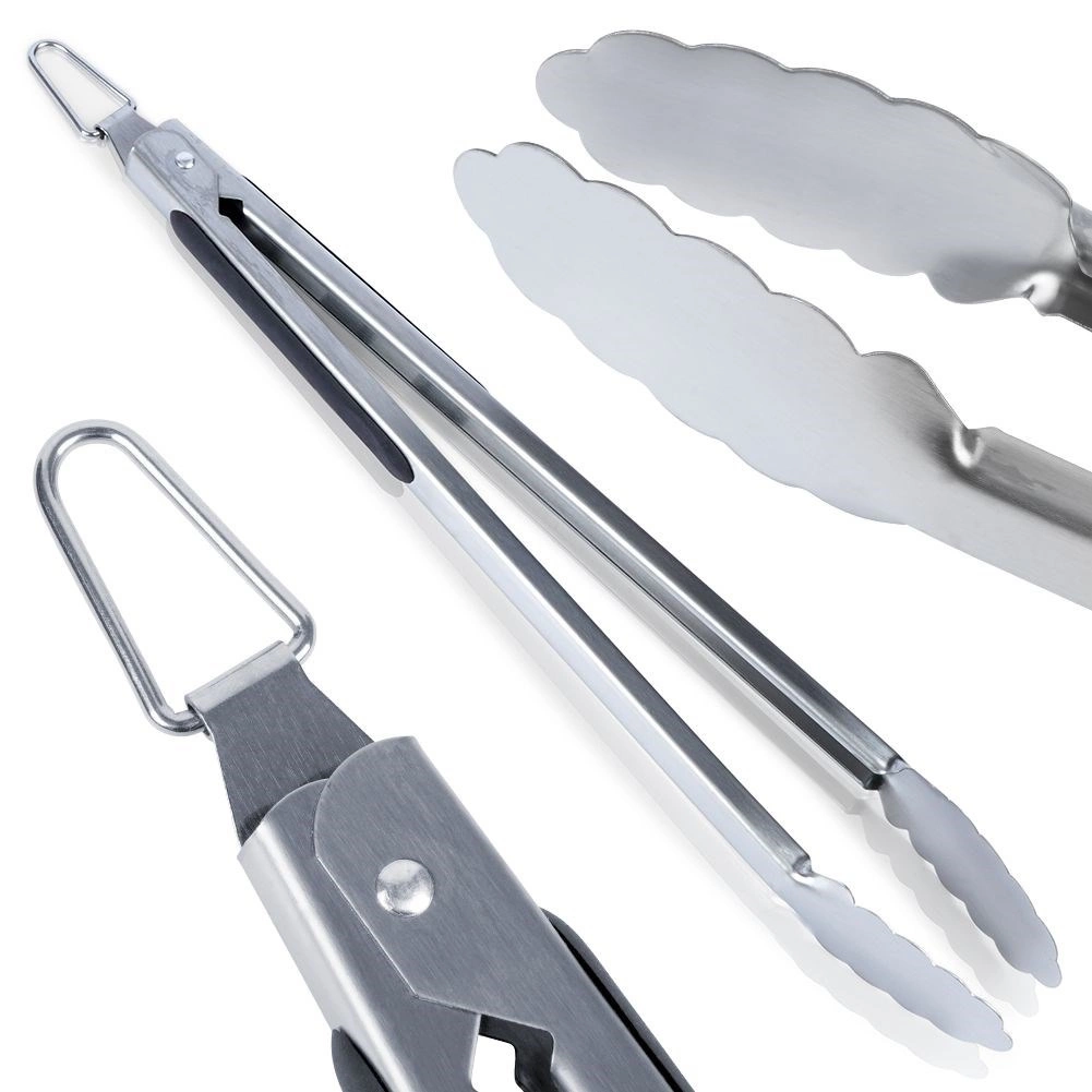 Het geïntegreerde oog met vergrendeling houdt de tang gesloten en maakt het gemakkelijk om deze bij de barbecue of in de keuken op te hangen.