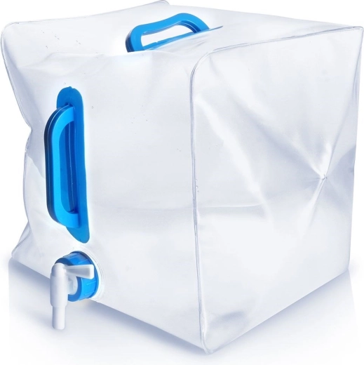 Opvouwbare jerrycan voor drinkwater met een inhoud van 20 liter, gemaakt van hoogwaardige transparante kunststof die zowel duurzaam als licht is. De ingebouwde kraan zorgt voor gecontroleerd schenken zonder morsen en ergonomische handgrepen maken ook een volle container gemakkelijk te dragen.