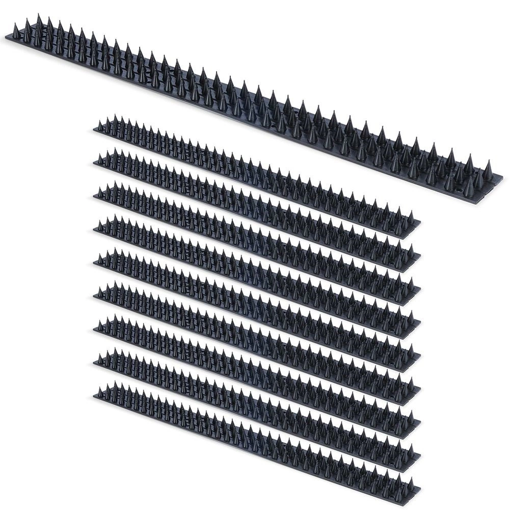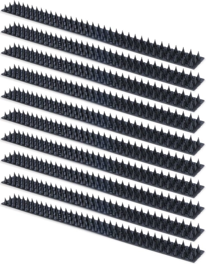 Houd oppervlakken schoon en beschermd tegen nestelen en vervuiling. De set vogelweringspikes biedt een modulaire constructie voor eenvoudig koppelen tot de gewenste lengte en om randen van vensterbanken, leuningen of smalle richels te bedekken. De dicht geplaatste spikes van 2 cm hoog verhinderen veilig landen, waardoor het zitten effectief wordt ontmoedigd.