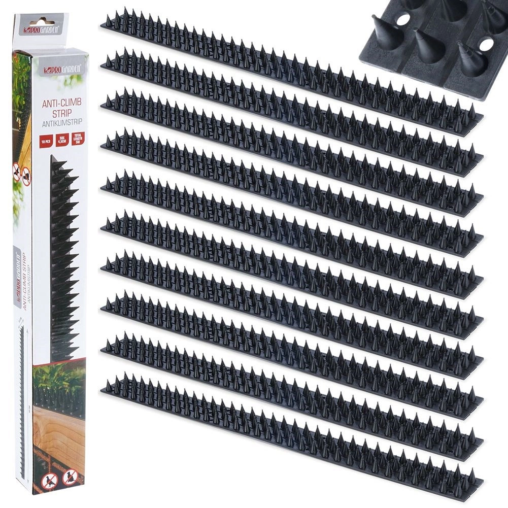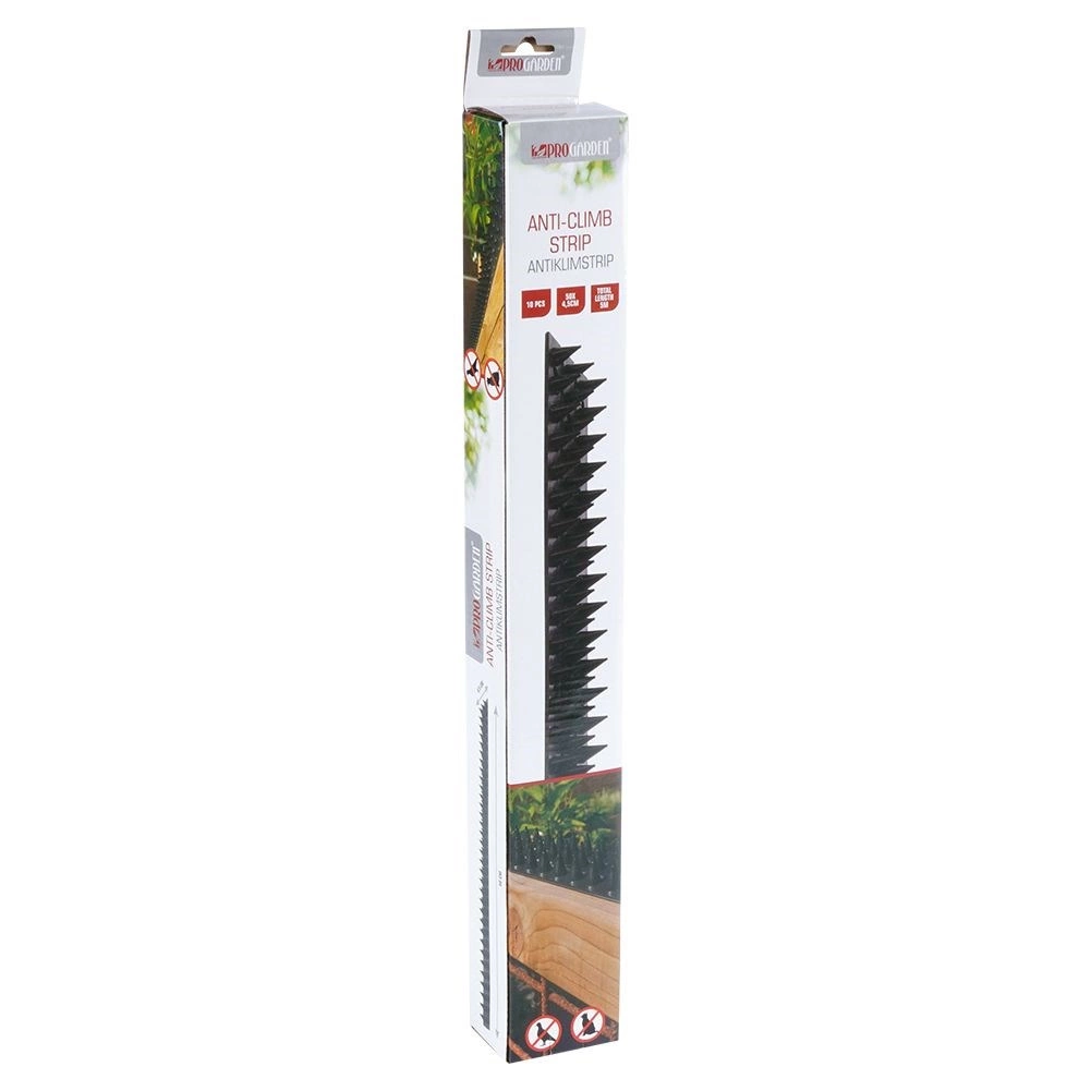 Dankzij duurzaam kunststof in het zwart zijn de strips onopvallend maar zeer effectief, ook buiten. De installatie is snel en flexibel – gebruik montagelijm, schroeven, spijkers of kabelbinders, afhankelijk van de ondergrond. Het merk PROGARDEN garandeert afwerkingskwaliteit conform Europese normen.