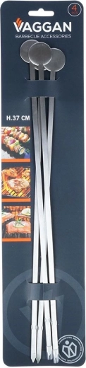 Praktische set van vier stalen spiesen van 37 cm voor het bereiden van heerlijke vlees- en groentespiesen op de grill of in de oven. Ze zijn gemaakt van roestvrij staal met een matte afwerking, hebben een scherpe punt voor gemakkelijk rijgen en een ronde eindstop om wegglijden van ingrediënten te voorkomen. Herbruikbaar, duurzaam en eenvoudig te reinigen – een geweldig alternatief voor wegwerpspiesjes.