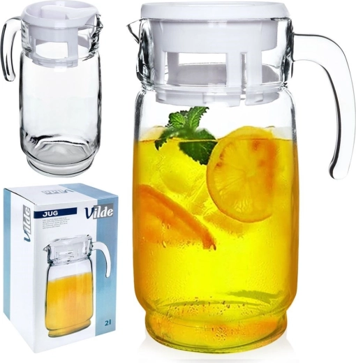 Deze kwalitatieve glazen kan van helder, duurzaam glas is geschikt voor het dagelijks serveren van dranken, zowel thuis als in de tuin. De maximale capaciteit zonder deksel is 2 l (praktische inhoud met deksel ca. 1,9 l), waardoor het een uitstekende keuze is voor gezinsmaaltijden, picknicks en ontmoetingen met vrienden. Dankzij de ergonomische handgreep en de brede hals is vullen, roeren en reinigen eenvoudig.