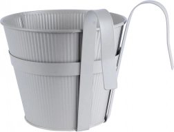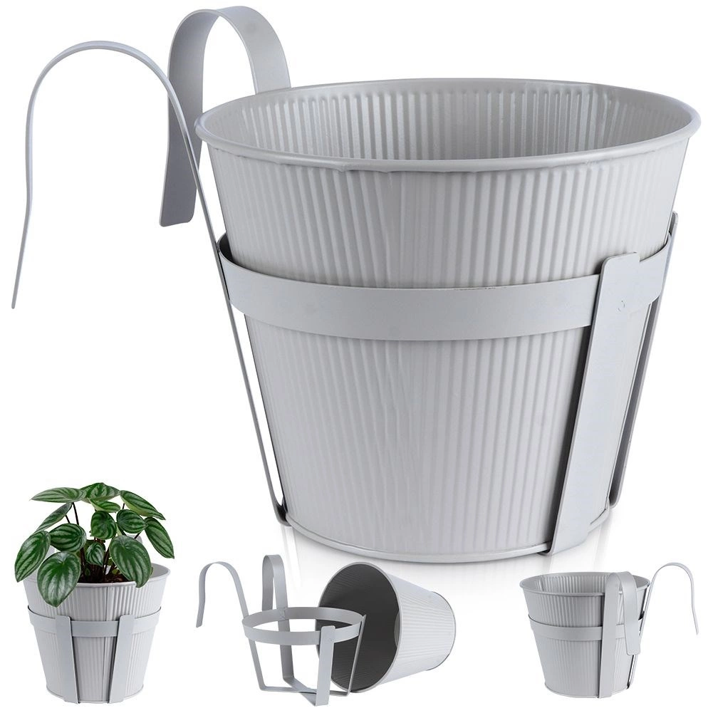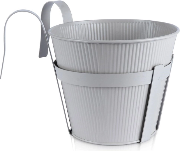Creëer een groene oase, zelfs op een kleine ruimte. Deze metalen hangbloempot met geribbeld design hang je eenvoudig aan een balustrade tot 6 cm dik en dankzij de robuuste constructie houdt hij je planten betrouwbaar vast. Geschikt voor zowel echte als kunstbloemen, evenals voor het kweken van kruiden.