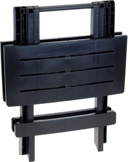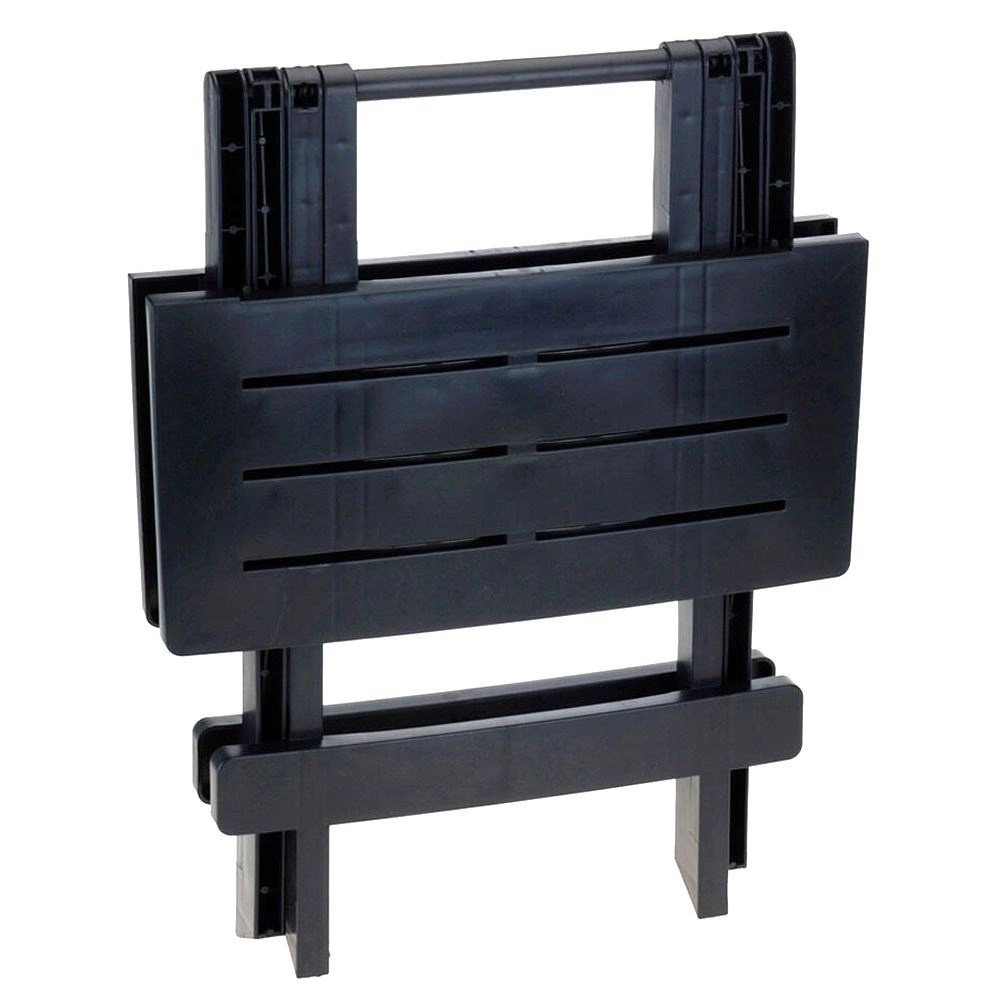 Door het lage gewicht, de comfortabele handgreep en het platte formaat na het opvouwen is hij eenvoudig op te bergen en te vervoeren in de auto. De tafel is gemaakt van hoogwaardig kunststof dat weerbestendig is en makkelijk te onderhouden – ideaal voor gebruik buitenshuis het hele jaar door.