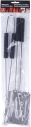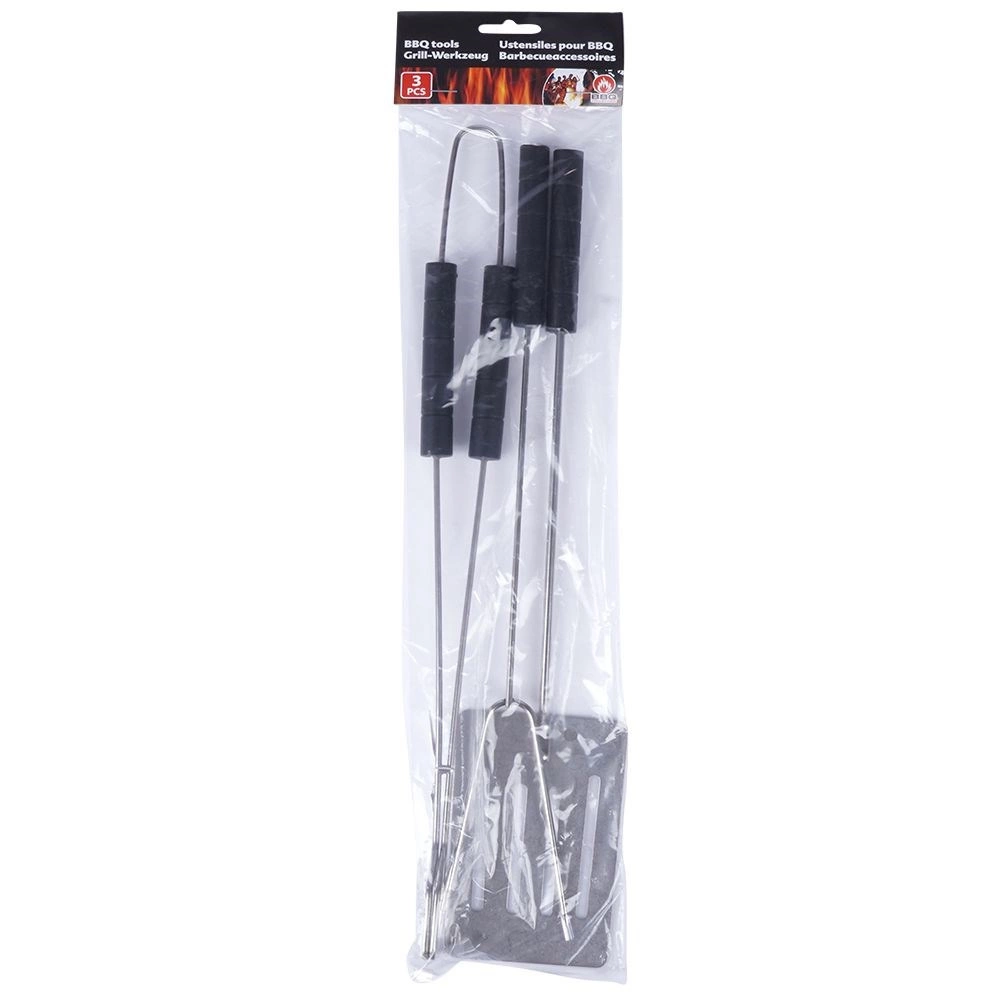 Deze driedelige set barbecuegereedschap is ideaal voor het gemakkelijk omdraaien, serveren en hanteren van gerechten tijdens het grillen en bakken. Gemaakt van hoogwaardig metaal in een elegante zilverkleur en zwart, duurzaam kunststof voor een comfortabele grip. Dankzij de lange handgrepen werk je veilig en met vertrouwen aan de grill.
