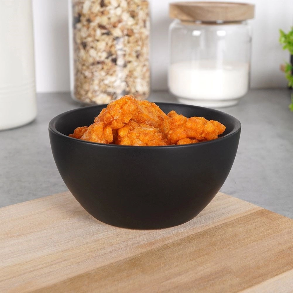 Deze veelzijdige kom is je helper bij het serveren van nootjes, gedroogd fruit, salades, dips en zoete desserts. De minimalistische vorm en de matzwarte afwerking passen in zowel moderne als klassieke keukens en zijn gemakkelijk te combineren met andere serviesstukken.
