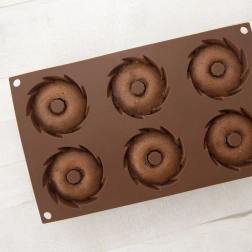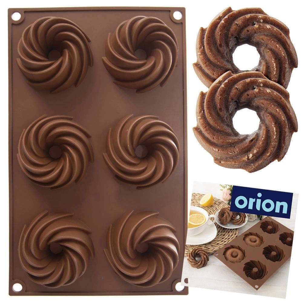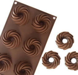 Praktische indeling met 6 holtes in een decoratieve spiraalvorm voor gelijkmatig bakken en een stijlvolle uitstraling van je desserts.