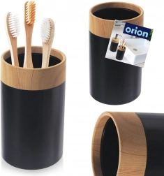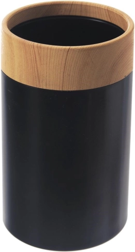 Het zwarte badkamerbekertje met een elegant houteffect past in zowel klassieke als moderne badkamers. Dankzij de compacte afmetingen van 7,5 × 7,5 cm en een hoogte van 11,5 cm neemt het weinig ruimte in, maar biedt het voldoende plek voor dagelijkse benodigdheden. Het minimalistische design is eenvoudig te combineren met andere accessoires in een vergelijkbare stijl.