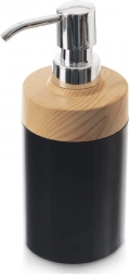 Dit stijlvolle zeeppompje combineert modern matzwart met een natuurlijke houtlook en een glanzende pomp. Geschikt voor vloeibare zeep, desinfectie en afwasmiddel. Dankzij de eenvoudige schroefdop is bijvullen snel en schoon, wat tijd en geld bespaart bij de aankoop van grotere, meer ecologische navullingen.