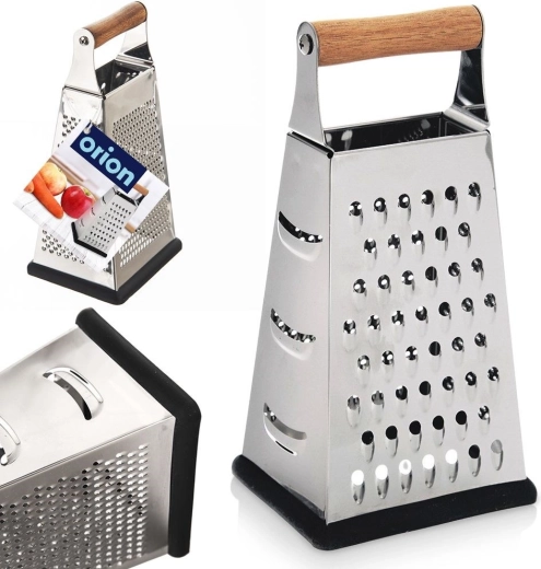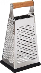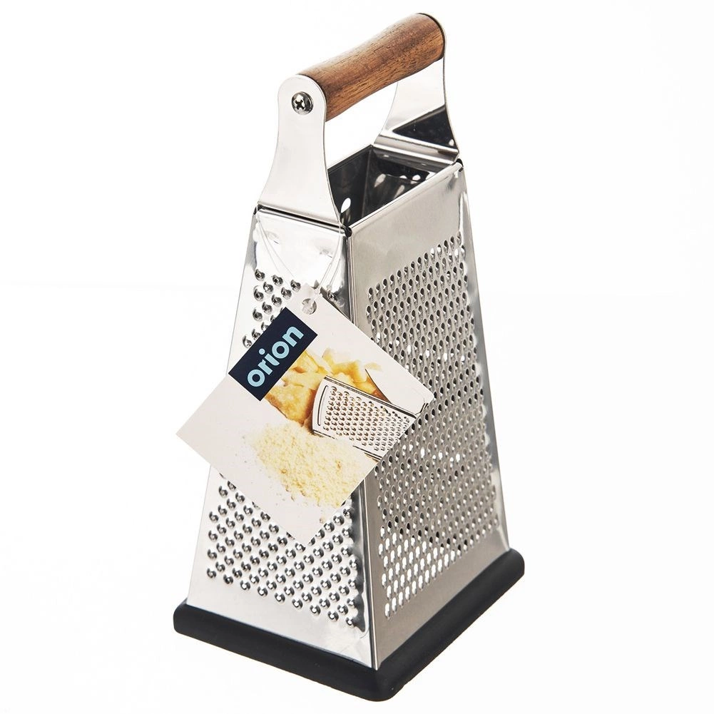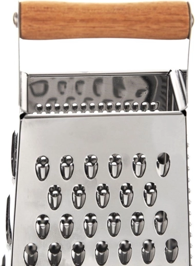 Ontdek de veelzijdige keukenrasp die de voorbereiding van groenten, fruit, kaas en specerijen makkelijker maakt. De roestvrijstalen behuizing garandeert een lange levensduur en scherpe snijvlakken, terwijl de comfortabele handgreep van acaciahout en de antislip rubberen basis zorgen voor een zekere grip en stabiliteit tijdens het werken.
