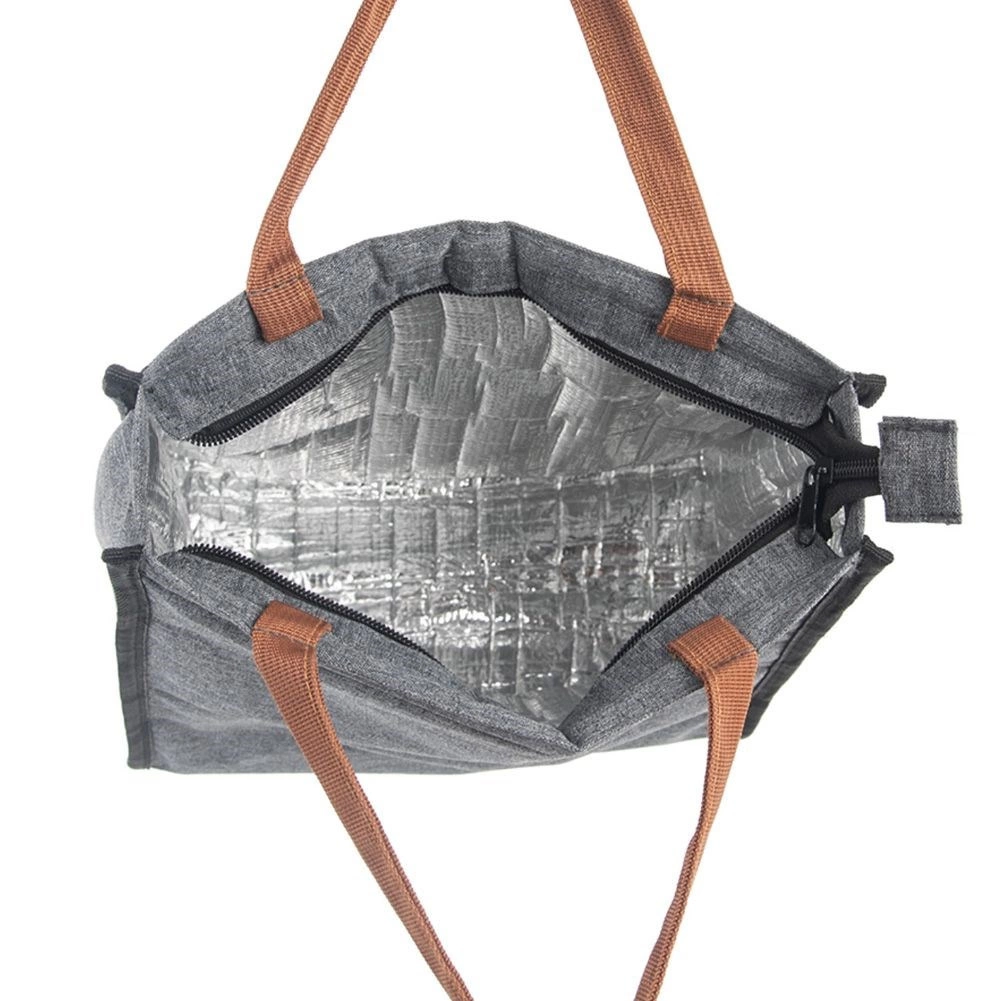 Lichte en duurzame koeltas is een geweldige hulp voor dagelijks gebruik en vrije tijd. Dankzij de thermo‑isolatie blijven koude dranken koud en warme gerechten warm gedurende langere tijd. Stijlvolle grijze uitvoering met bruine handvatten combineert gemakkelijk en past zowel in de stad als in de natuur.