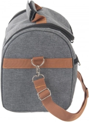 Voor maximaal comfort heeft de tas een afneembare en verstelbare schouderriem, een stevige handgreep voor snel dragen en een voorvak met rits voor kleine spullen. De tweerichtingsrits zorgt voor snelle toegang tot de inhoud. De stijlvolle combinatie van grijs met bruine bandjes past zowel in de stad als in de natuur.