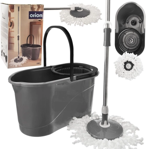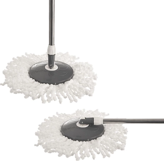 Praktische draaibare mop met een grote emmer van 19 l voor eenvoudig en hygiënisch schoonmaken zonder bukken. Voorzien van een verstelbare steel van 90–120 cm, een draaibare reinigingskop om ook onder meubels te komen en een microvezelhoes die uitstekend absorbeert en geen strepen achterlaat. Uitgerust met een roterende wringer, wieltjes en een comfortabele handgreep voor gemakkelijk dragen.