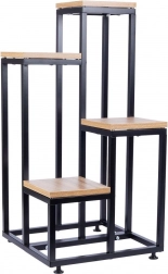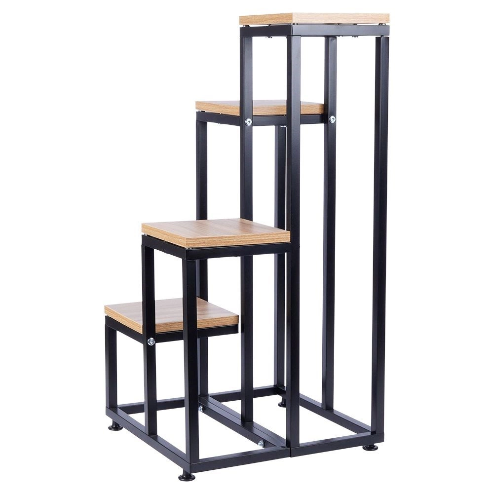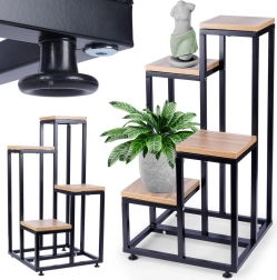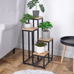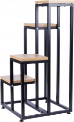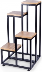 Breng een moderne loft-touch in je interieur met deze bloemenstandaard met vier niveaus. Het stabiele metalen frame in het zwart en de legplanken van hoogwaardige MDF met een natuurlijke houttextuur vormen een tijdloze combinatie die in elke ruimte past. De standaard is perfect voor zowel levende als kunstplanten en dient tevens als sokkel voor decoraties.