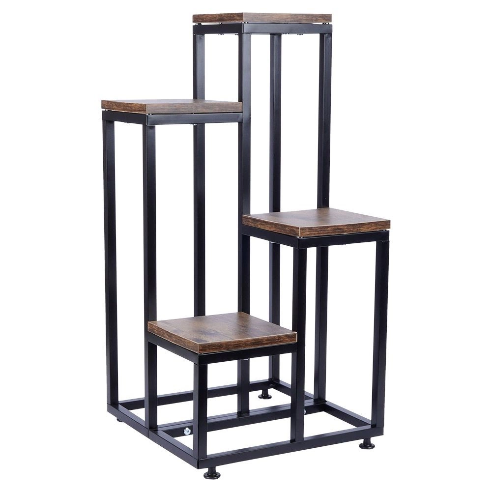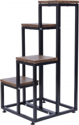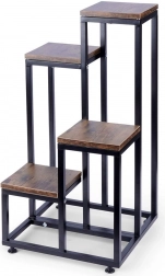 Breng een moderne industriële sfeer in huis en kantoor. Deze vierlaagse bloemenstandaard van zwart metaal met planken van hoogwaardige MDF in donkerhouteffect biedt compacte afmetingen en hoge stabiliteit. Perfect voor de woonkamer, keuken, eetkamer, hal, maar ook voor kantoor of wachtruimte.