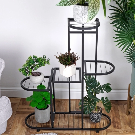 Ontdek een elegante oplossing voor je planten en decoraties. Deze plantenstandaard met 5 niveaus in matzwart komt prachtig tot zijn recht in moderne interieurs en geeft ze een uniek karakter. Geschikt voor kamerplanten, vetplanten, klimplanten en stijlvolle accessoires zoals fotolijstjes, souvenirs of vazen met snijbloemen.