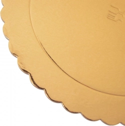 Praktische en elegante onderlegger voor taart of gebak in een luxueuze gouden kleur, perfect voor zowel thuis als professioneel gebruik. Gemaakt van dik karton en aan beide zijden bekleed met een speciale gouden folie die doorweken voorkomt en het hanteren en reinigen vergemakkelijkt.