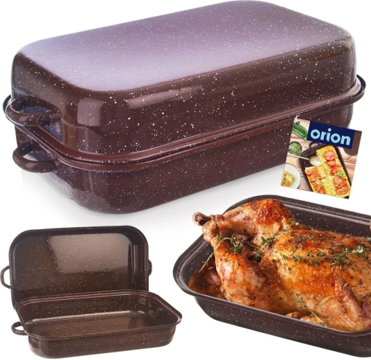 Praktische geëmailleerde braadslede met deksel met een inhoud van 4 liter, ideaal voor het braden van vlees, groenten en ovengerechten. Het deksel kan apart worden gebruikt als tweede schaal, waardoor u twee braadsledes in één krijgt. Geschikt voor alle soorten kookplaten, inclusief inductie, gemakkelijk te reinigen en vaatwasserbestendig.