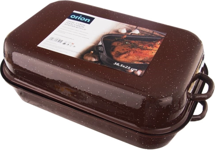 Deze robuuste geëmailleerde braadslede in elegante bruine kleur biedt veelzijdig gebruik in elke keuken. Dankzij het deksel met handgrepen krijgt u na het afnemen twee aparte oven- en serveerschalen. Het geëmailleerde oppervlak is veilig voor de gezondheid en geschikt voor allergiepatiënten, is eenvoudig te onderhouden en gerechten blijven minder snel kleven.