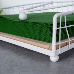 - Stevige aandrukarm – de wind blaast de servetten niet weg, ideaal voor buitengebruik.